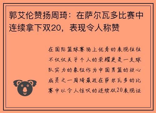 文章摘要:这篇文章讲述了一个普通小伙通过篮球明星的牵线搭桥,最终逆袭成功,实现梦想的励志故事。文章从四个方面深入阐述了这一过程。首先,篮球明星如何发现并认可小伙的潜力,为其提供平台和机会;其次,篮球明星的引领帮助小伙开阔视野,认识到自己未来的可能性;接着,篮球明星通过网络和社交平台,帮助小伙获得了更多的关注和支持;最后,篮球明星为小伙提供了实质性的指导和帮助,最终使其走向成功。这不仅是一个关于篮球...